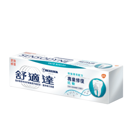 舒適達專業修復抗敏牙膏的成分NovaMin,是獨特及經臨床驗證的含鈣配方。此配方會釋出形成牙齒的天然成分,修復牙齒受損敏感部位,紓緩牙齒敏感,讓您享受生活,不受敏感牙齒困擾。